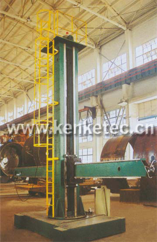 6.立柱的回轉支構安裝于臺車內,導向機構結構更為緊湊,橫臂與導軌面的距離最低可達1050mm(單立柱結構大約為1600mm),在焊接筒體內縫時,無需墊高滾輪架,使用更為方便。